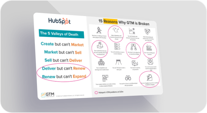 © 2022 Go To Market Partners, LLC. All rights reserved. 15 Reasons Why GTM is Broken Hubspot’s GTM problems at $15m Create but can't Market Market but can't Sell Sell but can't Deliver Deliver but can't Renew Renew but can't Expand The 5 Valleys of Death