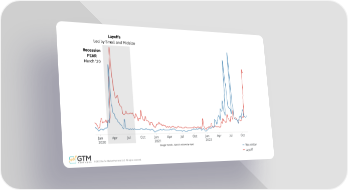 Layoffs Led by Small and Midsize Recession FEAR March '20 © 2022 Go To Market Partners, LLC. All rights reserved. G o o g l e T r e n d s - S e a r c h v o l u m e b y t o p i c