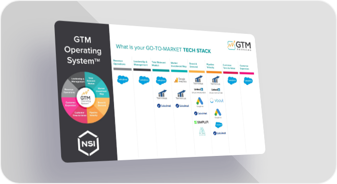 Revenue Operations Leadership & Management Total Relevant Market Market Investment Map Brand & Demand Pipeline Velocity Customer Time-to-Value Customer Expansion What is your GO-TO-MARKET TECH STACK GTM Operating System TM