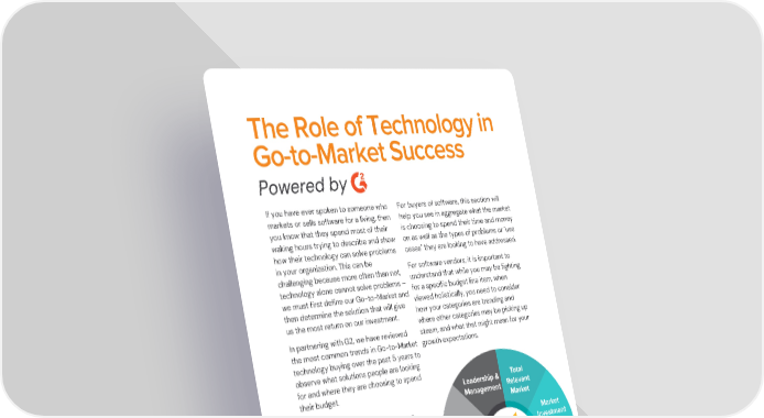 The Role of Technology in Go-to-Market Success Powered by If you have ever spoken to someone who For buyers of software, this section will markets or sells software for a living, then help you see in aggregate what the market you know that they spend most of their is choosing to spend their time and money waking hours trying to describe and show on as well as the types of problems or "use how their technology can solve problems cases" they are looking to have addressed. in your organization. This can be For software vendors, it is important to challenging because more often than not, understand that while you may be fighting technology alone cannot solve problems – for a specific budget line item, when we must first define our Go-to-Market and viewed holistically, you need to consider then determine the solution that will give how your categories are trending and us the most return on our investment. where other categories may be picking up In partnering with G2, we have reviewed steam, and what that might mean for your the most common trends in Go-to-Market growth expectations. technology buying over the past 5 years to observe what solutions people are looking for and where they are choosing to spend their budget. Over the last 4 years, we have seen a remarkable increase in awareness by B2B companies of the need to evolve the way they Go-to-Market. Digitization of the buying process, the need for efficient growth, and of course, the COVID pandemic, have accelerated the need for this Go-to- Market transformation. © 2022 Go To Market Partners, LLC. All rights reserved.