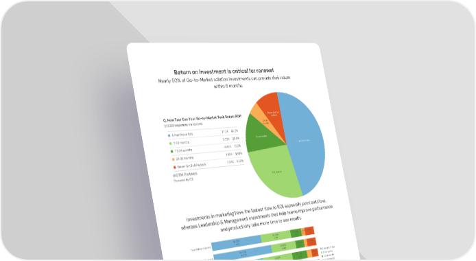 Return on Investment is critical for renewal Nearly 50% of Go-to-Market solution investments can provide their return within 6 months. Q.How Fast Can Your Go-to-Market Tech Return ROI? 37,000 responses via reviews @GTM Partners Powered by G2 Investments in marketing have the fastest time to ROI, especially point solutions, whereas Leadership & Management investments that help teams improve performance and productivity take more time to see results. @GTM Partners Powered by G2 © 2022 Go To Market Partners, LLC. All rights reserved.