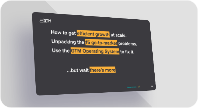 @sangramvajre 06 How to get efficient growth at scale. Unpacking the 15 go-to-market problems. Use the GTM Operating System to fix it. ...but wait there’s more