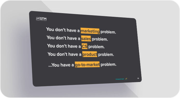 @sangramvajre 06 You don’t have a marketing problem. You don’t have a sales problem. You don’t have a CS problem. You don’t have a product problem. ...You have a go-to-market problem.